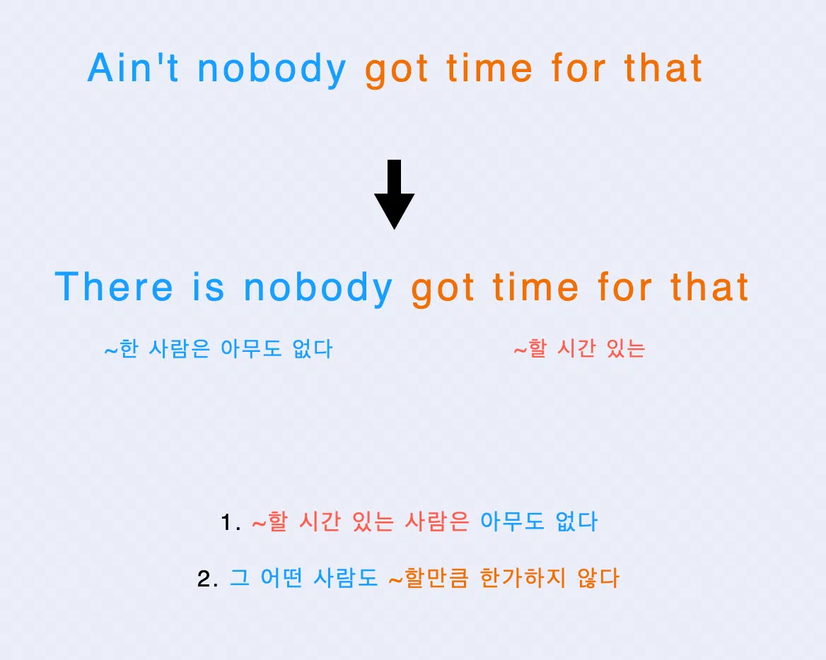 즉, Ain't no, nothing, nobody, 와 같이 부정형 표현과 함께 써도 무방하다.