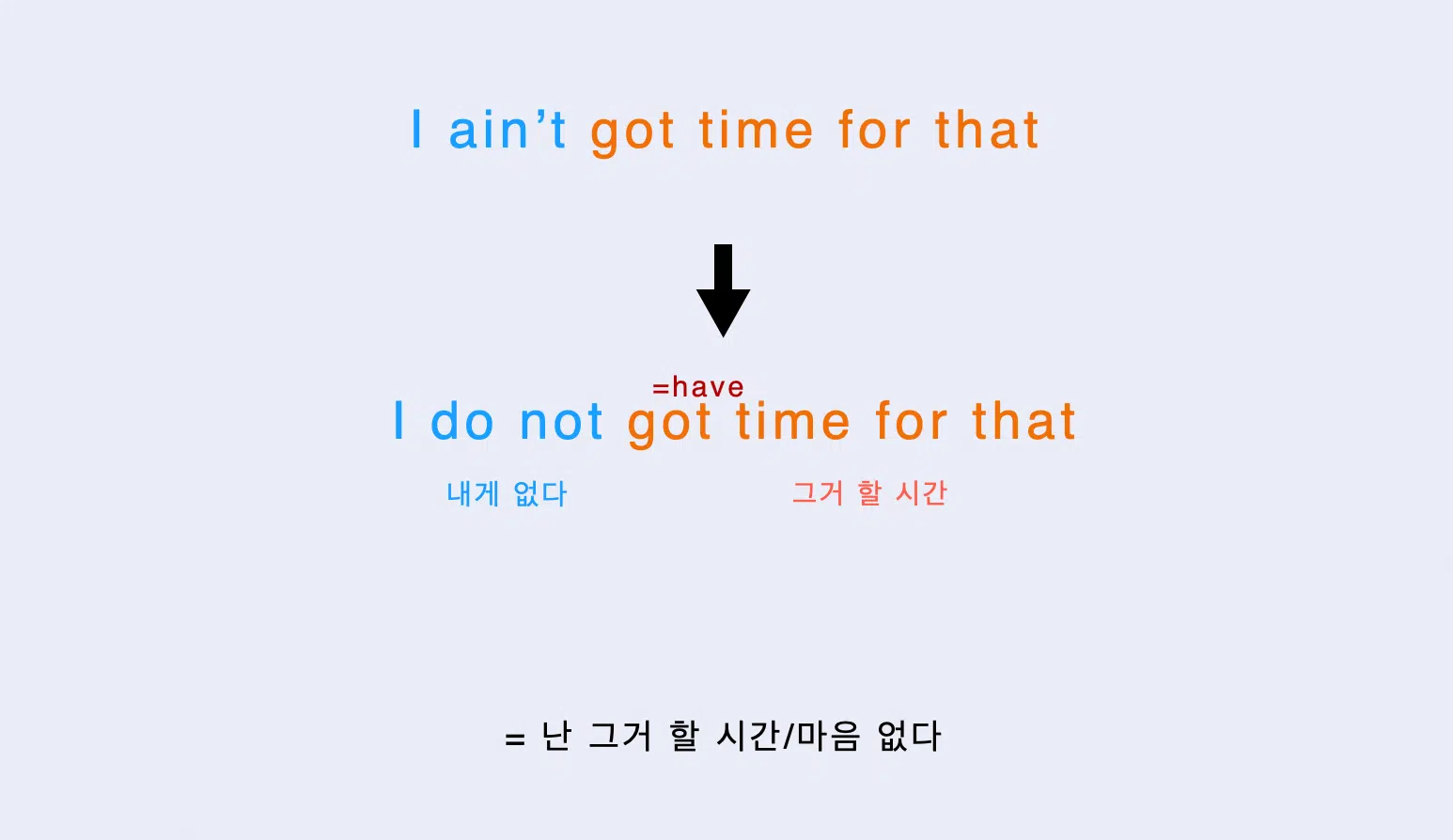 ain't은 우리나라 식으로 치면 '외않되' 와 같은 밈적으로 허용되는 표현이라고 이해하고 넘어가면