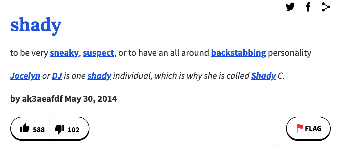 먼저, shady의 뜻은 어반딕셔너리에 이렇게 나와 있다.
