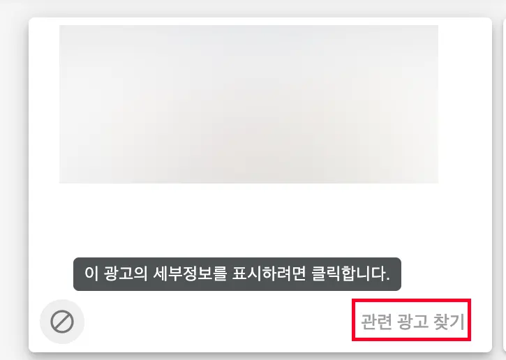 그중에 한 광고 블록에서 '관련 광고 찾기'를 클릭하면