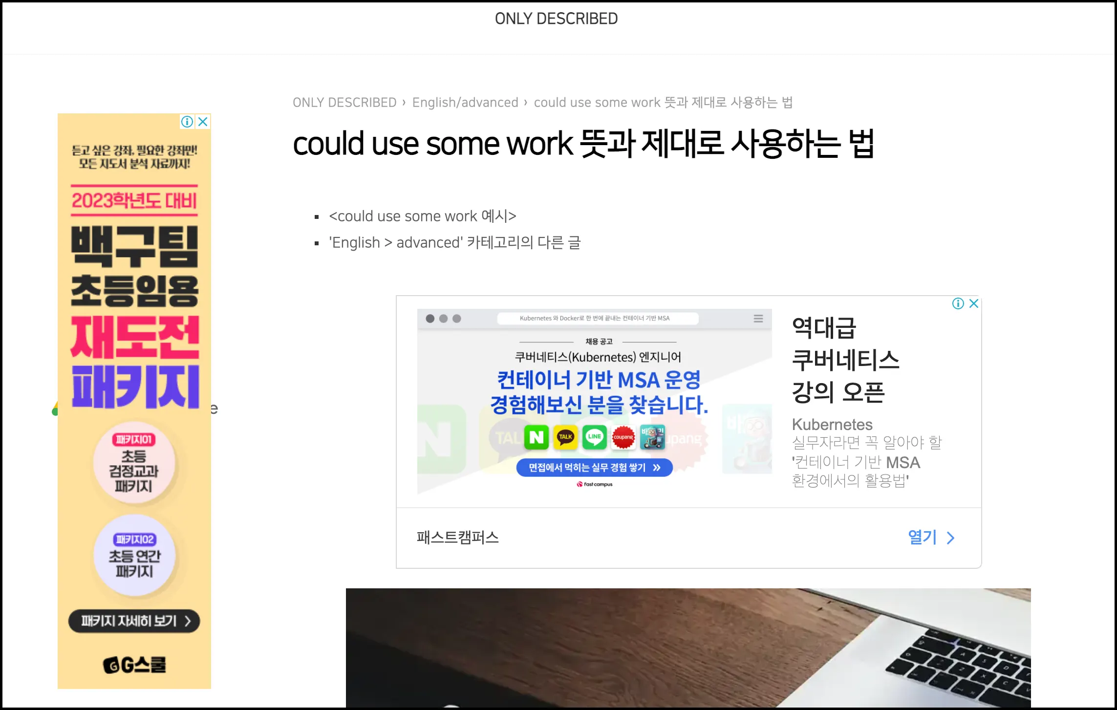 같은 네트워크 안의 비슷한 류의 광고들이 잔뜩 뜨는 것을 볼 수 있습니다.