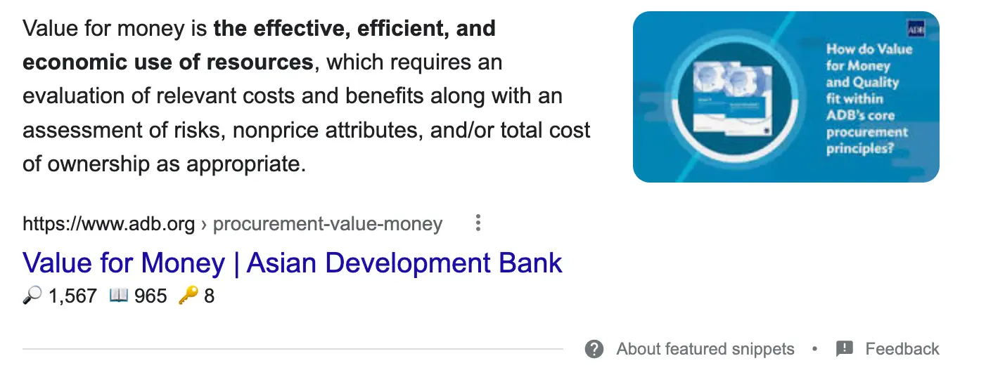 네이버에 찾아보니 value for money는 가성비라는 표현이 아닌, '적격성 조사 제도' 를 의미하는 것이니