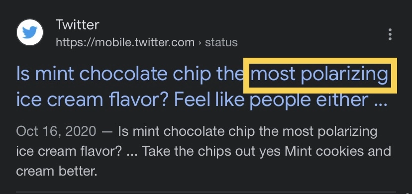 <민트초코칩이 호불호가 가장 많이 나뉘는 아이스크림 맛이야?> 라는 트윗도 볼 수 있다.