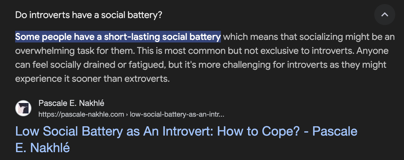 "Usually my social battery is really low" 난 기가 빨리 빨려버리는 편이야
