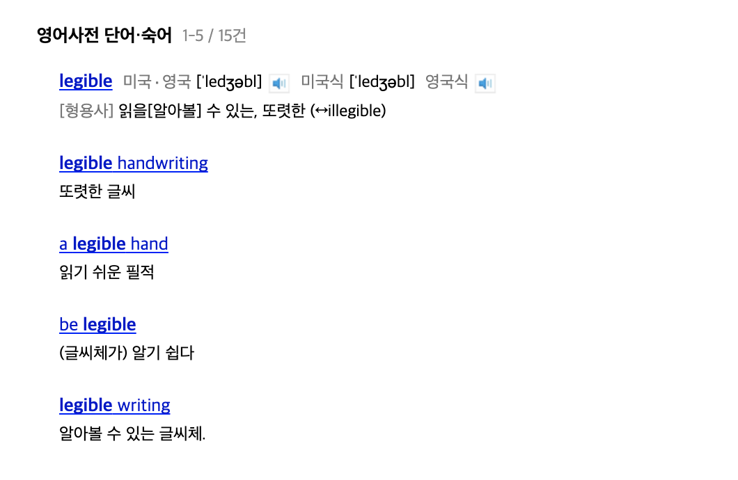 지렁이 같은 손글씨체 = legible하지 않은 것