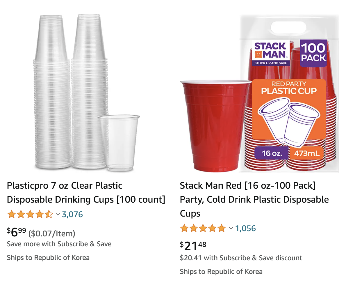플라스틱인 경우는 plastic cup