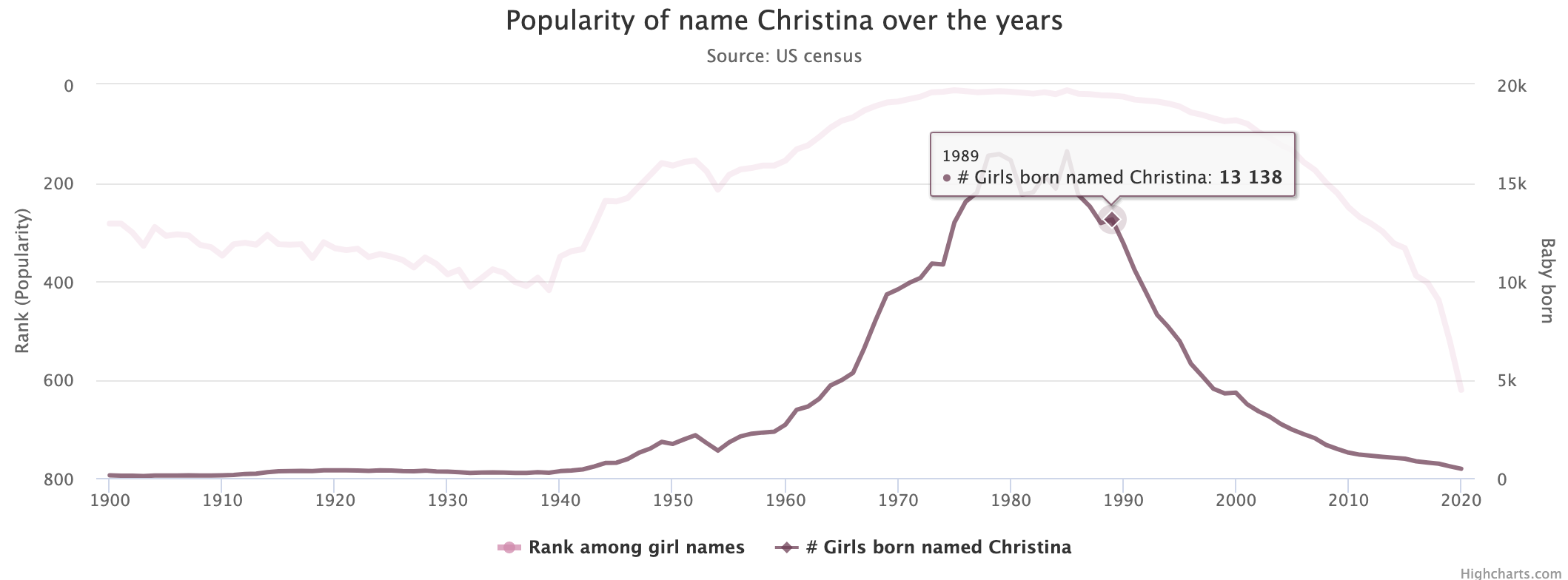 이 사이트에서 내가 생각해둔 이름을 검색하면 이름의 유행 시기나 사용 빈도를 쉽게 볼 수 있다!